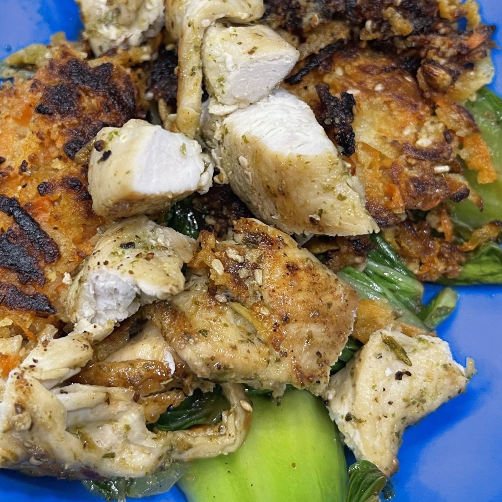 - Herby Veggie Fritters with Chicken & Bok Choy