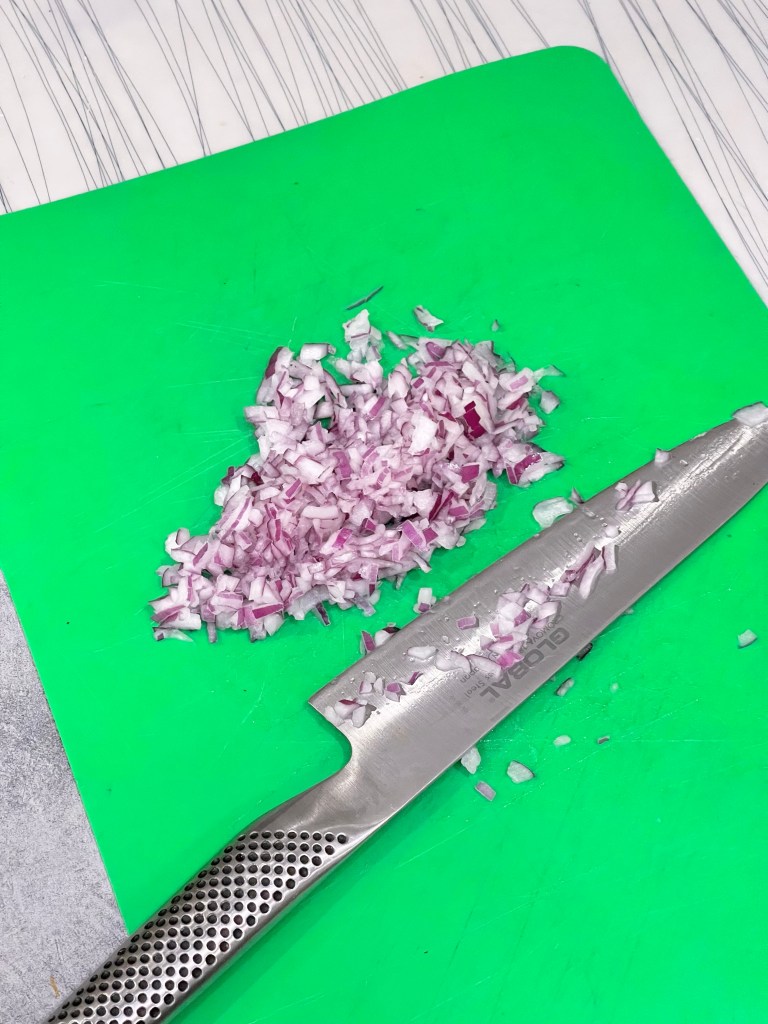 • 1/2 red onion, diced well