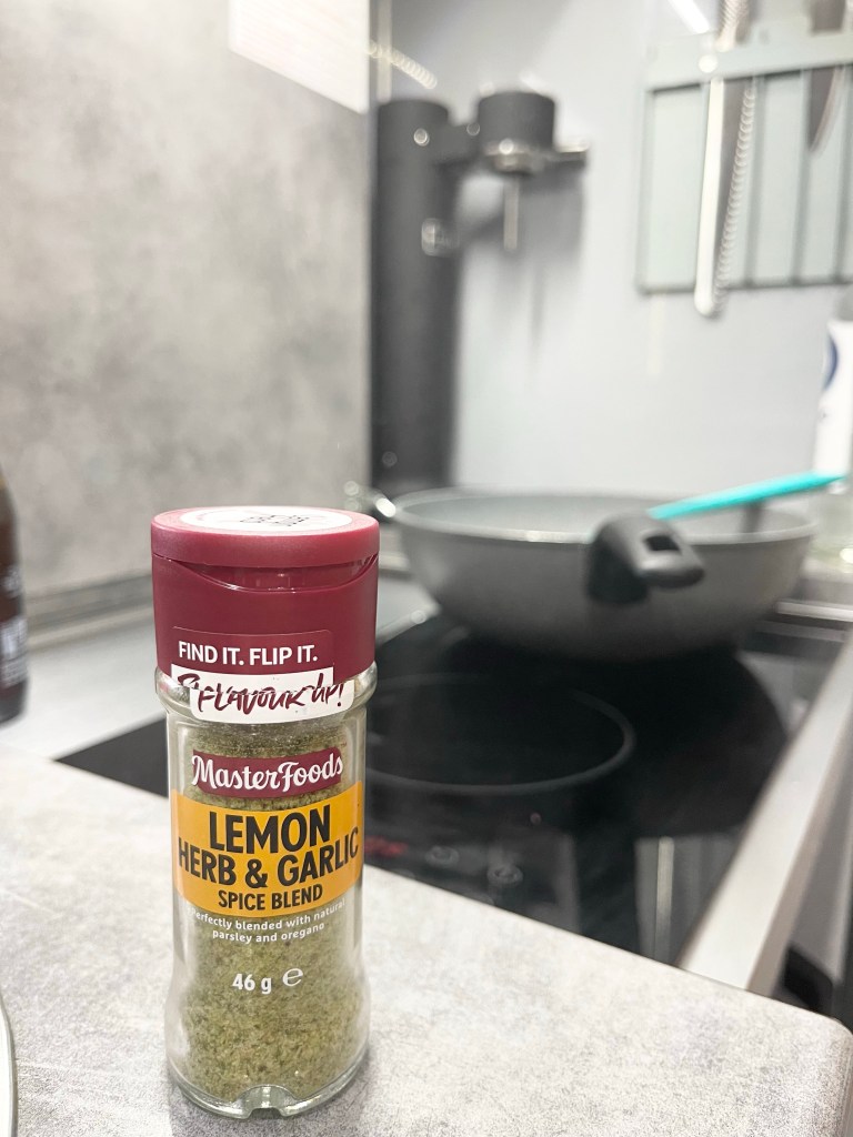 • 2 teaspoons of Masterfoods Lemon, Herb, & Garlic Spice Blend (pic below)